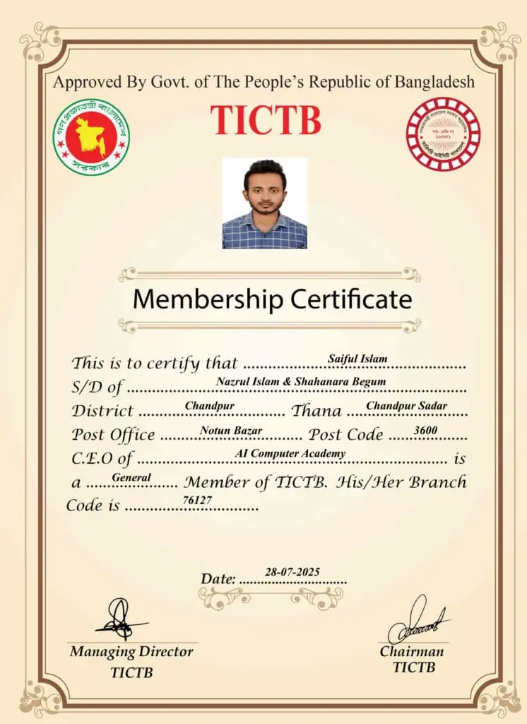 As a proud Partner of Technical ICT Bangladesh and recognized as the Best in Chandpur, we continue to deliver exceptional IT training programs. Our dedication to quality, effectiveness, and customer satisfaction ensures that our services and courses consistently meet the highest standards.